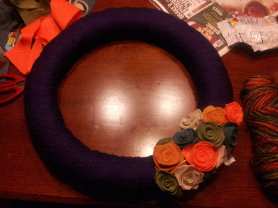 Oh and.... The wreath has been finished! After much frustration with tangling yarn I finally finished my huge wreath. Not sure if I'm happy with the colors and arrangements but its good enough for now!